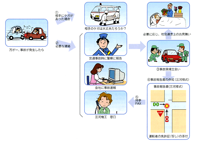 事故処理をスムーズに行い早期解決のため、後日、当社より書類等の提出をお願いした場合は速やかに提出してくださいますようお願い申し上げます。