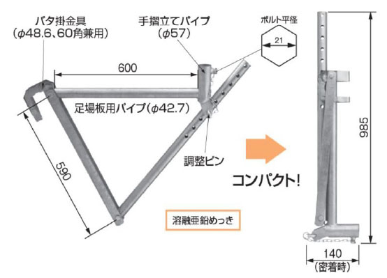 ・バタ掛け金具は角パイプ・丸パイプ兼用