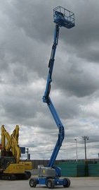 高く、障害物を乗り越えて作業ができる多関節Z型屈伸ブーム高所作業車!
