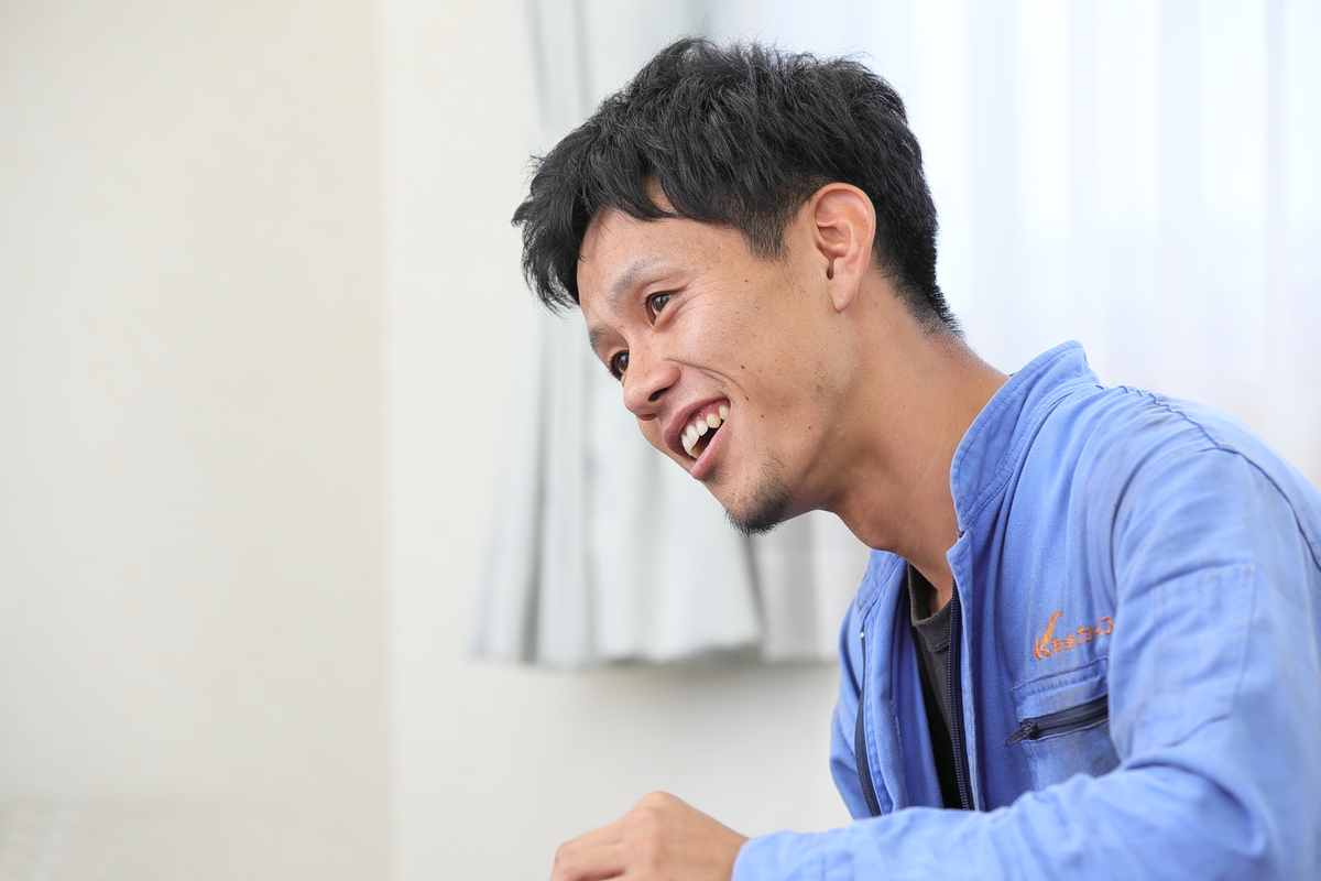 大学時代は、ガソリンスタンドのアルバイトに熱中。クルマのメンテナンスに少し関わり、乗り物関連の仕事に就きたいと考えました。通勤のしやすい地元であることと、アットホームな社風や先に入社した友人がいて親しみやすかったことから、同社に入社を決めました。